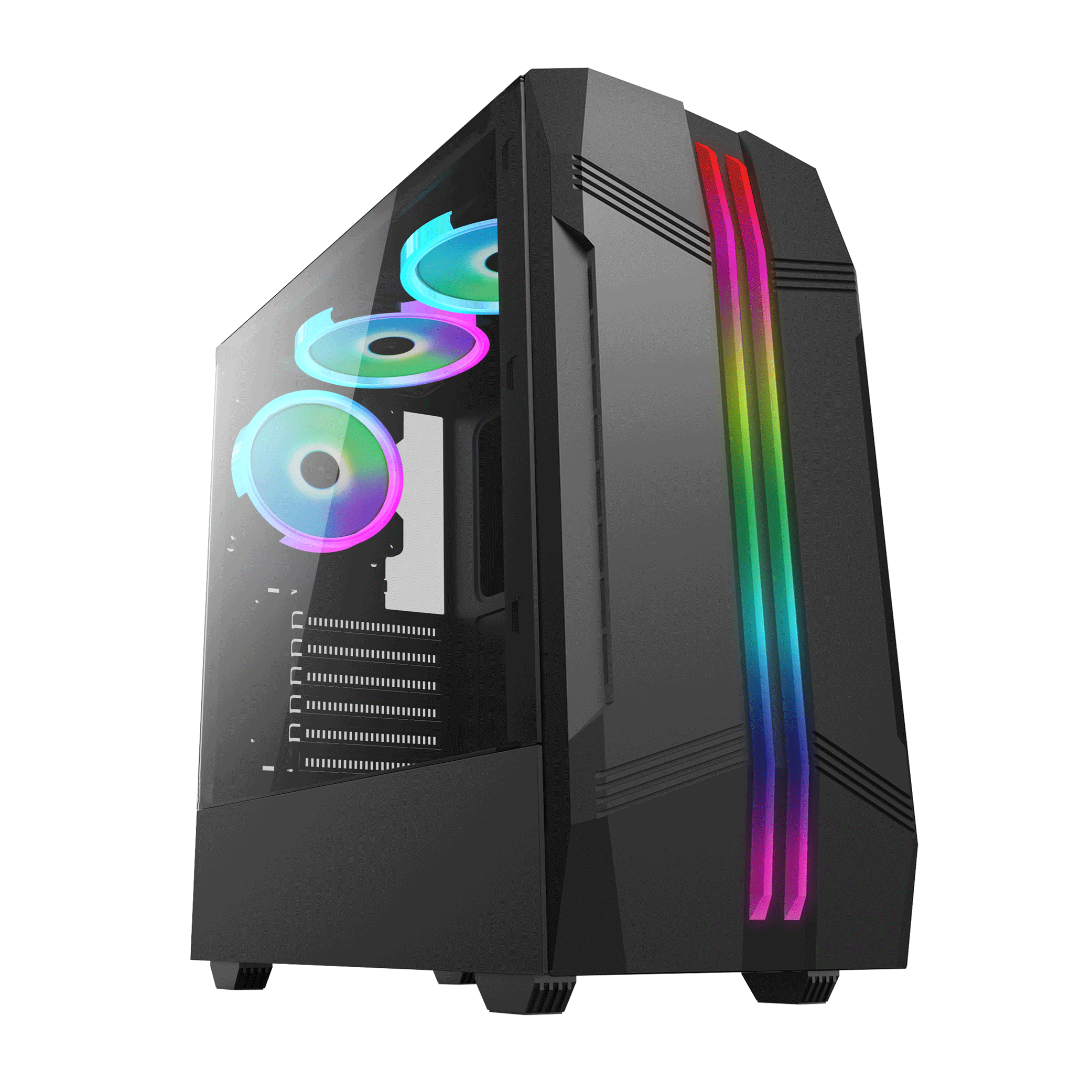 RGB подсветка, передняя панель из пластика, боковая панель из закаленного стекла, охлаждение (опционально): спереди 3 х 120 мм, сверху 2 х 120 мм, сзади 1 х 120 мм, USB 3.0 х 1 + USB 2.0 х 2 + HD AUDIO, HDD х 1 + SSD х 1 или HDD х 2, положение БП снизу корпуса, поддержка мат. плат ATX/Micro-ATX, макс. длина VGA: 305 мм, макс. высота охлаждения CPU: 170 мм, металл 0,5 мм SPCC, размер корпуса (с ножками) (Д*Ш*В): 385 х 200 х 450 мм, вес нетто: 4,0 кг, вес брутто: 4,6 кг.