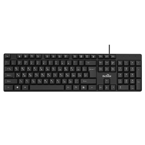 Стандартная клавиатура DeTech DT-505 USB в современном тонком дизайне. Высокое качество исполнения, стандартный набор клавиш, надежная устойчивая конструкция, не скользящая по поверхности стола, интерфейс USB. Высококачественная мембрана. Комфортный и четкий ход клавиш. Пониженный шум при работе.