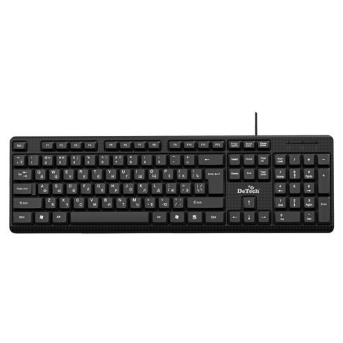 Стандартная клавиатура DeTech DT-509 USB в современном тонком дизайне. Высокое качество исполнения, стандартный набор клавиш, надежная устойчивая конструкция, не скользящая по поверхности стола, интерфейс USB. Высококачественная мембрана. Комфортный и четкий ход клавиш. Пониженный шум при работе.