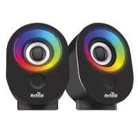 Стерео звук, RGB подсветка. Выходная мощность: 6Вт (3Вт*2). Импеданс: 4 Ом. Частотный диапазон: 60 - 20 000 Гц. Соотношение сигнал/шум: ≥60дБ. Размеры динамиков: 2*2". Регулятор громкости: есть. Разъем подключения: 3,5 мм. Питание: 5 В USB. Длина кабеля: 1.2 м. Размеры: 130х90х85мм (одой колонки).